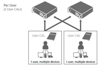 - Under the per-user model, licensing enforcement is absent. Each user is allowed to connect to an RD Session Host from any number of devices.
