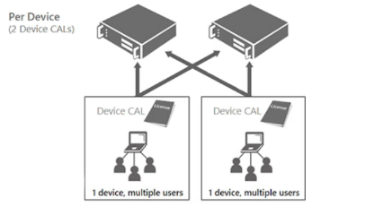 require purchasing a CAL for each device that connects to the server. This model is cost-effective for organizations where multiple workers use shared computers, such as in environments with different work shifts.